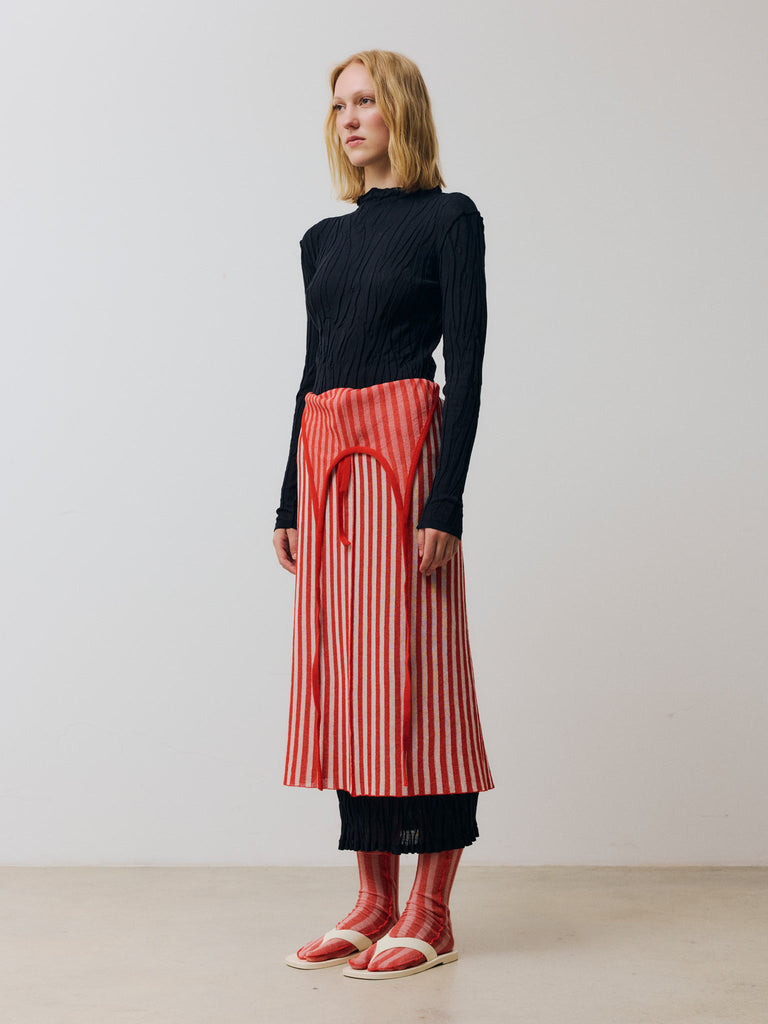 Striped apron dress Regular priceWrap-around apron dress in a fine striped jacquard crafted from ultrafine makò cotton. Features a straight fit with a scoop neck, self-tie halter strap, and wrap construction with a self-tie closure. Finished with an open back and a slit detail at the back. Perfect for layering or to wear on its own.