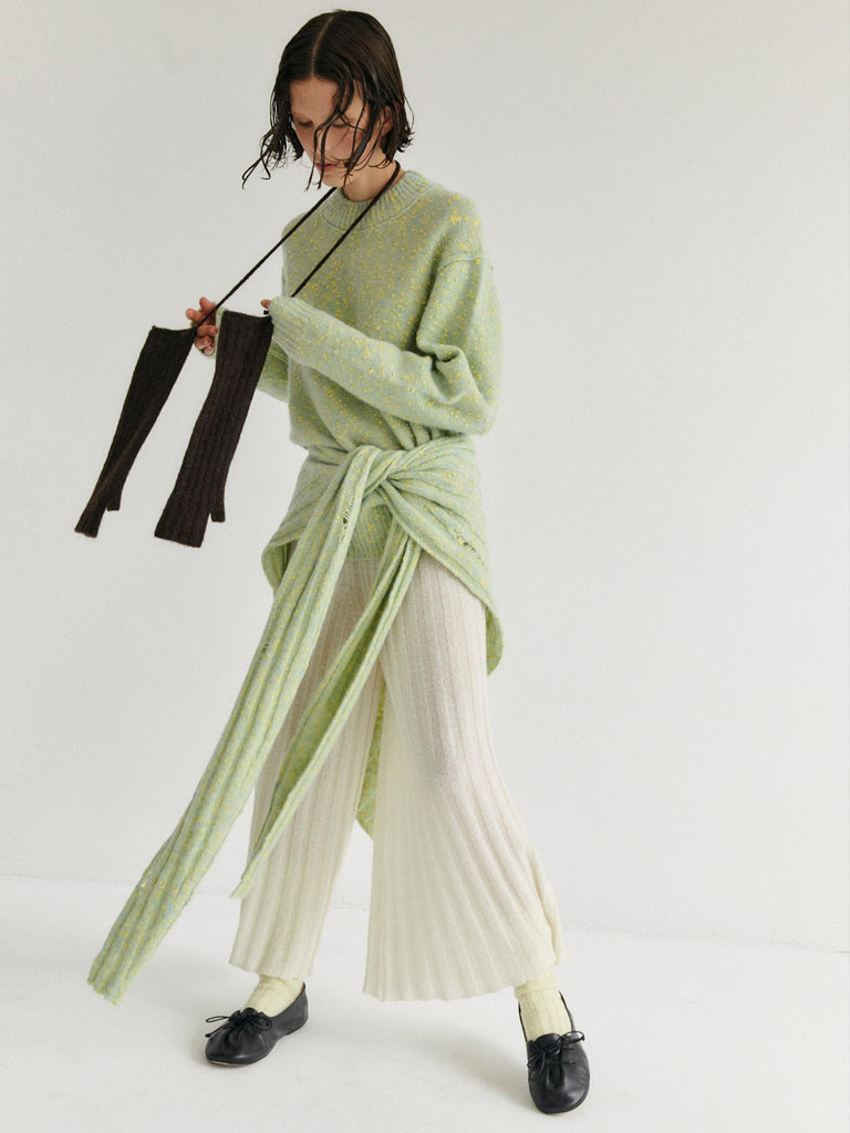 Speckled asymmetric scarf Regular priceRibbed asymmetric scarf knitted from a textured two-tone tweed yarn featuring distressed details. Designed for endless styling possibilities.