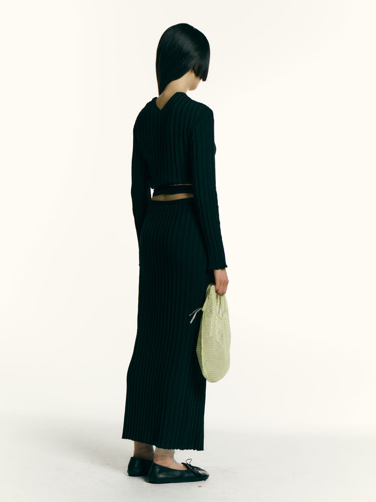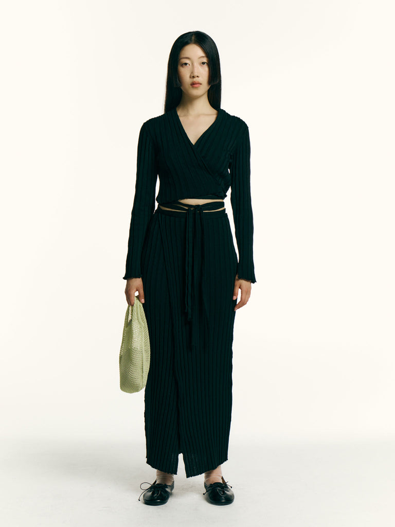 V-neck ribbed crop cardigan knitted from a linen blend featuring cuff splits and a wraparound self-tie belt that can be tied in a multitude of ways.