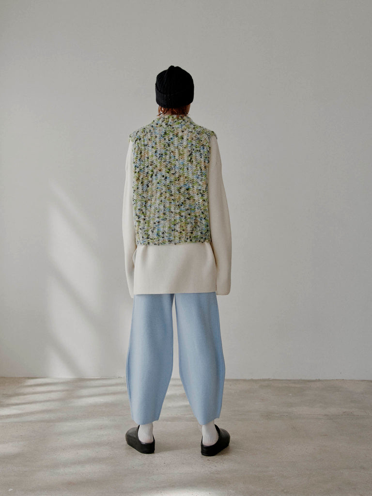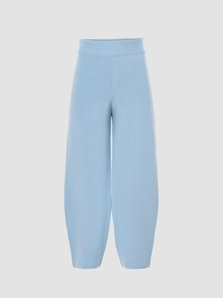 Ribbed rounded leg pants knitted from extrafine soft wool with a relaxed fit. Ribbed elasticated waistband and fully-fashioned details.