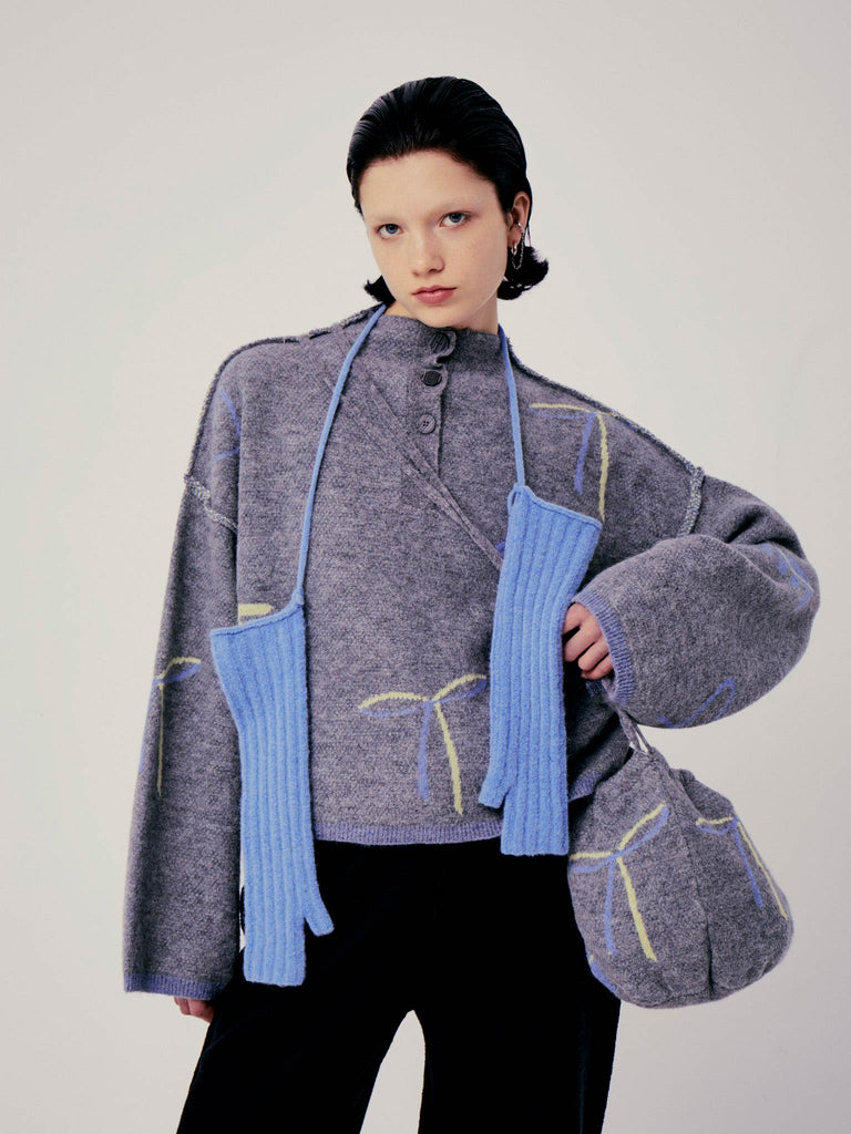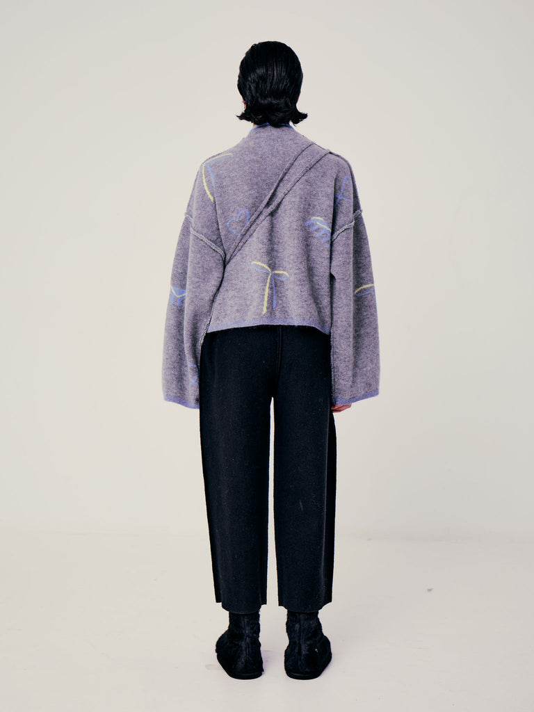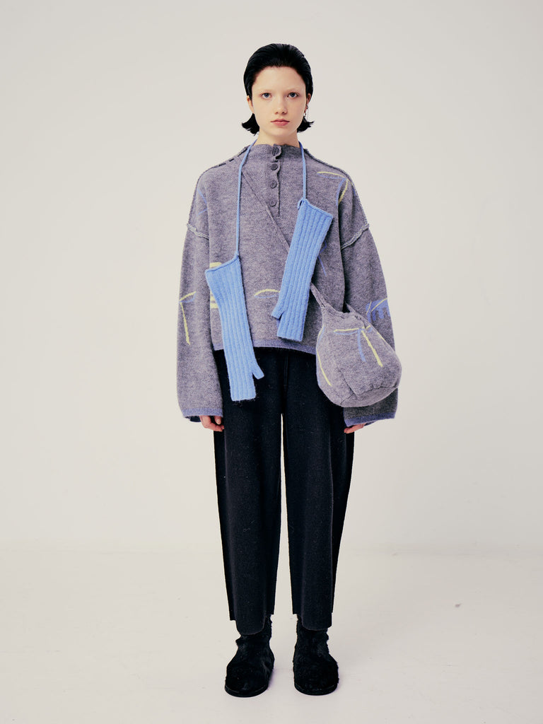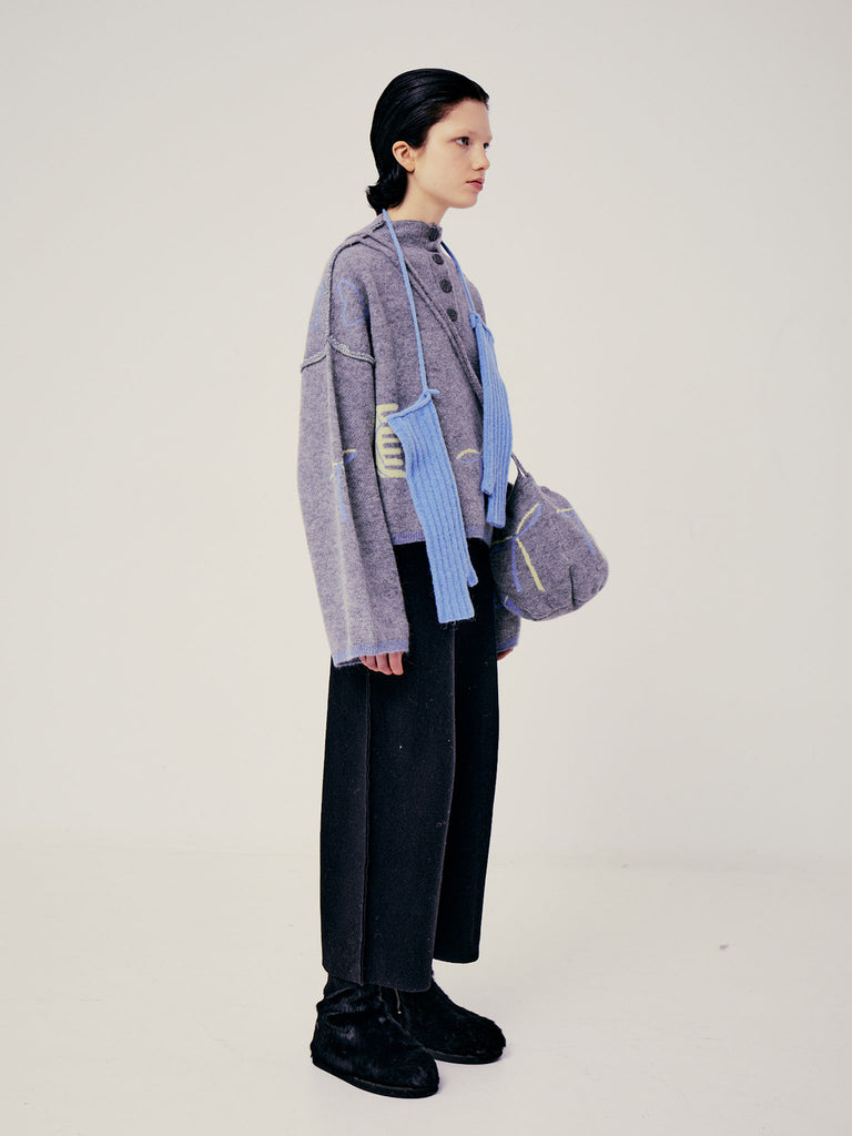 Boxy polo sweater crafted in a grapic jacquard knit from a luxurious baby alpaca blend. Designed for a relaxed fit, featuring elongated straight sleeves, exposed seams and a buttoned front placket.