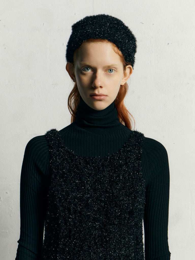 Fuzzy beanie Regular priceBeanie knitted from a shimmery and slightly fuzzy fancy yarn.