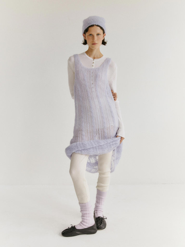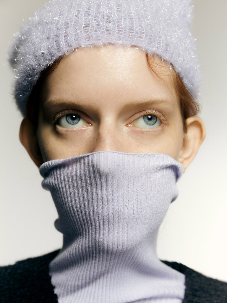 Fuzzy beanie Regular priceBeanie knitted from a shimmery and slightly fuzzy fancy yarn.