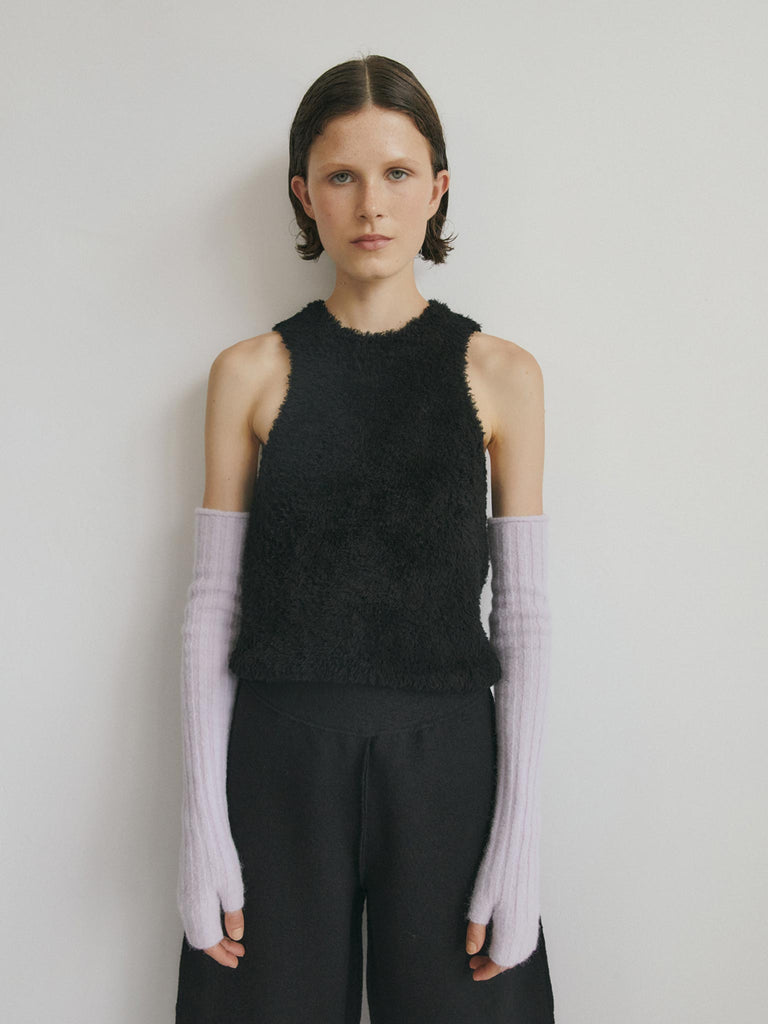 Long ribbed mittens Regular priceExtra long fingerless mittens that can be worn high or rolled down. Crafted from a soft and fuzzy baby alpaca blend for extra warmth.