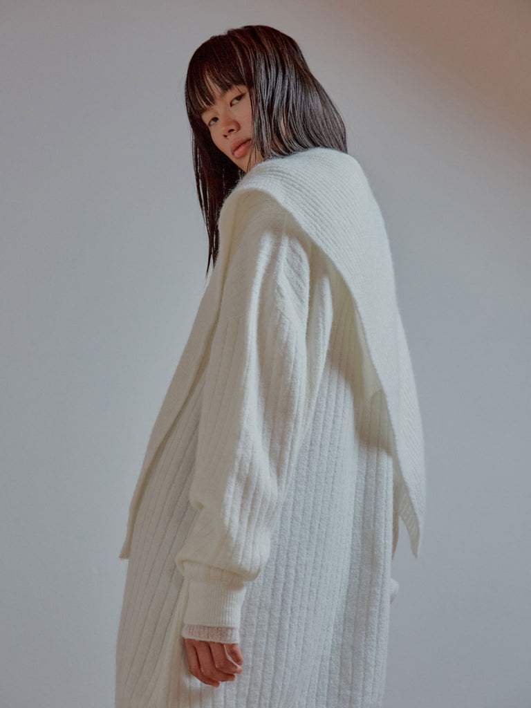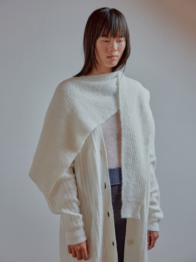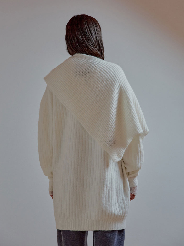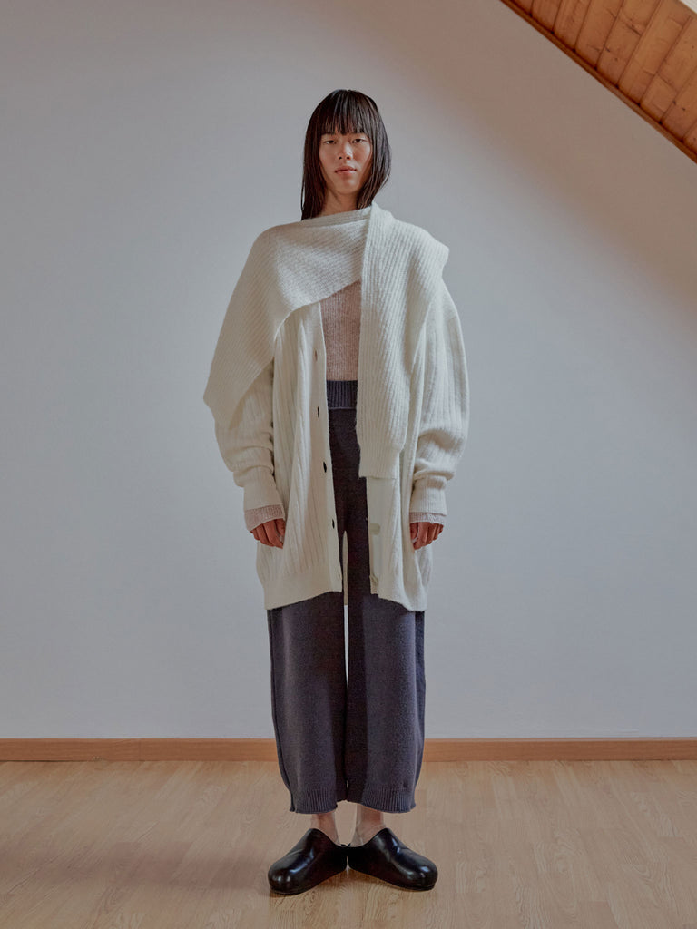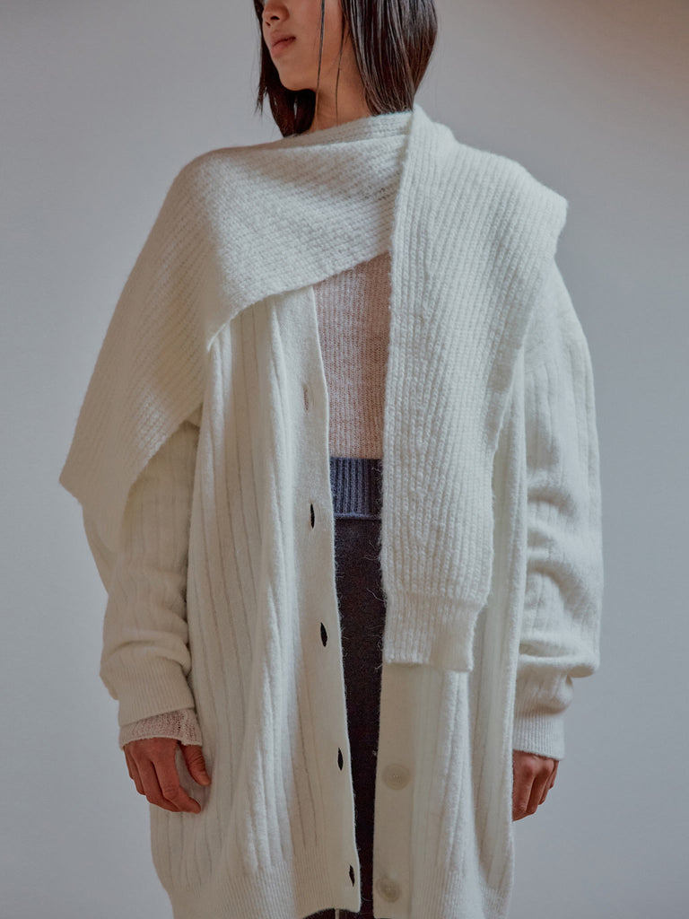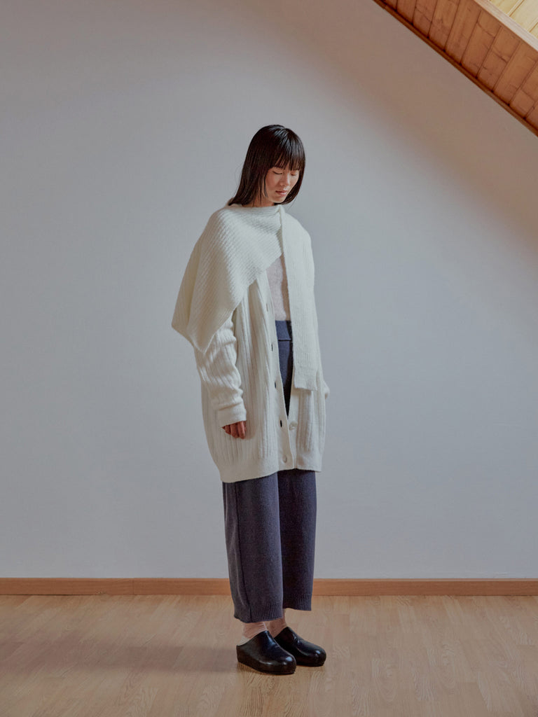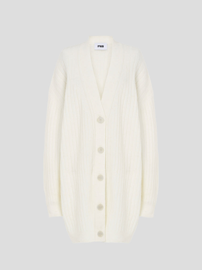 Ribbed oversized cardigan Regular priceRelaxed buttoned cardigan knitted from a fuzzy alpaca-wool blend yarn. Designed for a loose fit, features a deep v-neck, dropped shoulders and ample sleeves.