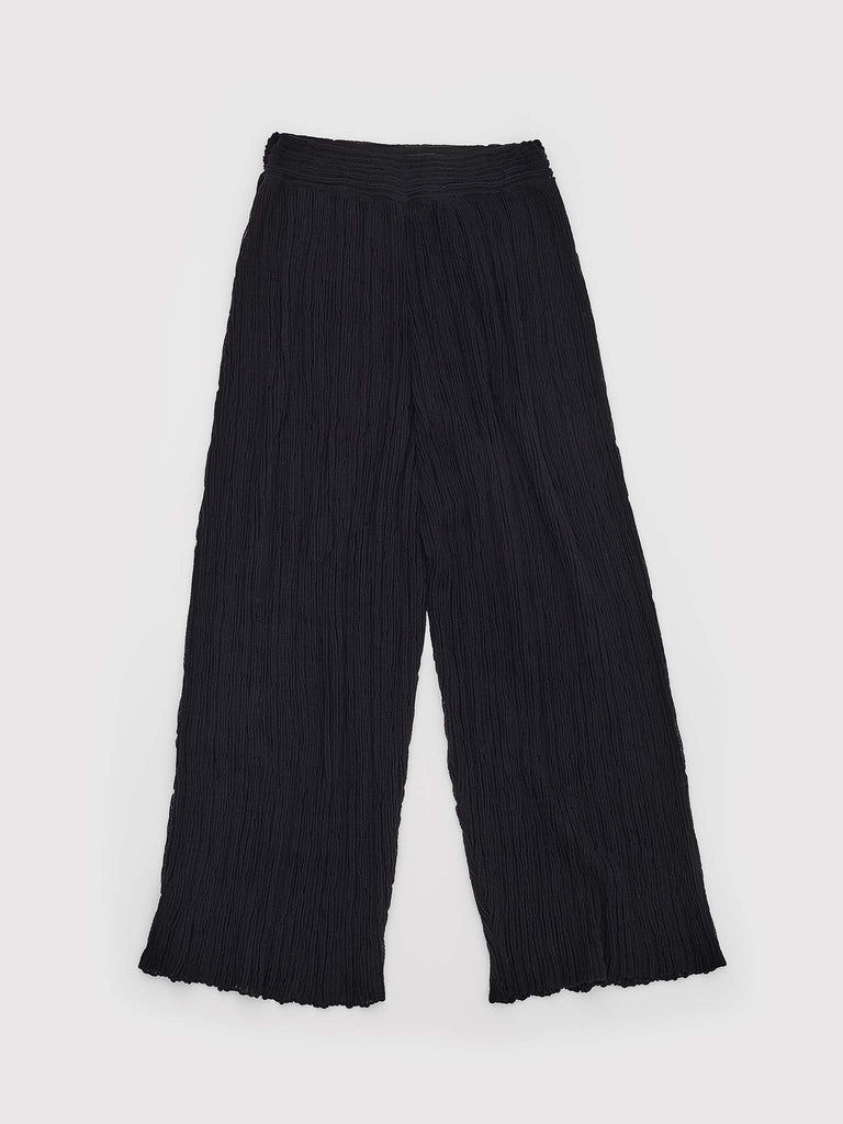 Textured wide leg pants Regular priceWide pants in a textured stitch crafted from a very thin organic cotton with a crepe handfeel. Relaxed fit featuring an elasticated waistband.