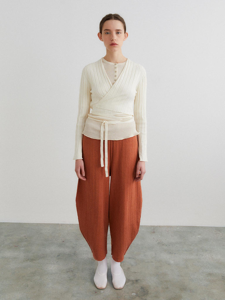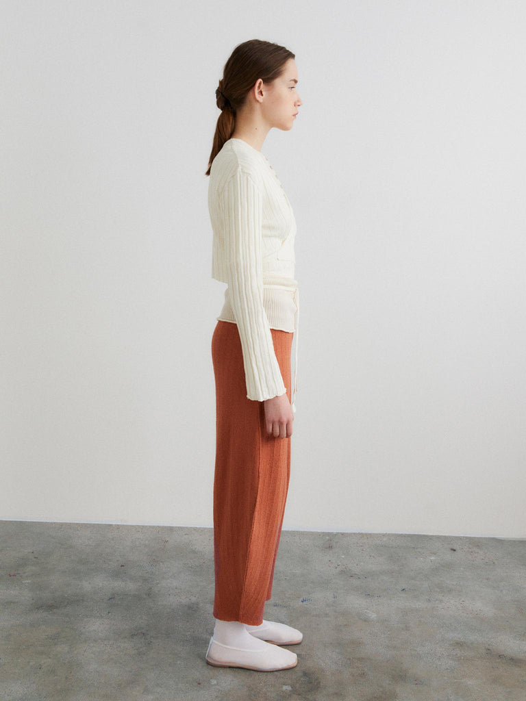 V-neck ribbed crop cardigan knitted from a linen blend featuring cuff splits and a wraparound self-tie belt that can be tied in a multitude of ways.