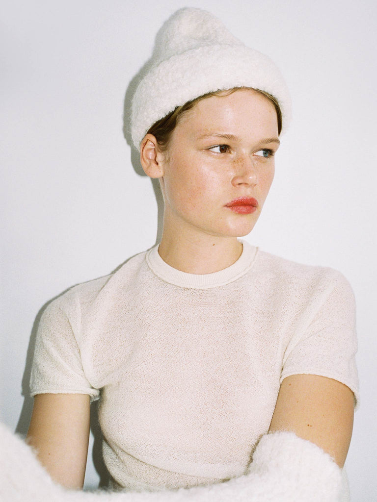 Alpaca bouclé beanie Regular priceBeanie knitted in soft and chunky alpaca Suri bouclé for extra warmth.