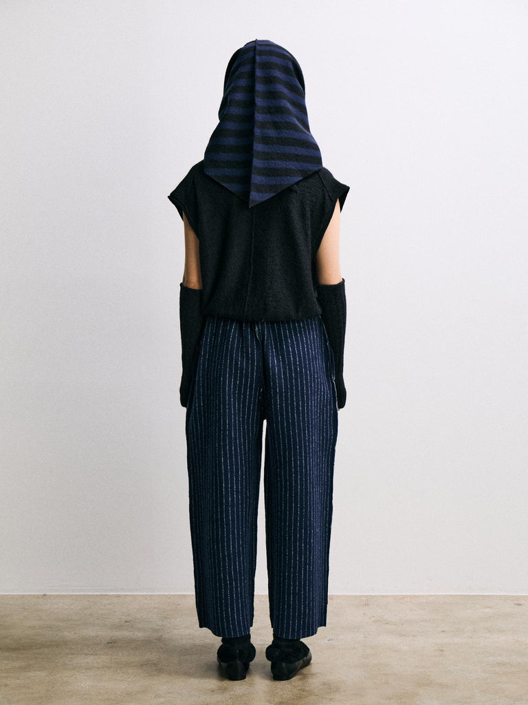 Pinstripe wool felted pants Regular priceStraight-leg pants crafted from crafted from boiled merino wool. Relaxed fit featuring exposed seams, side pockets and a ribbed elasticated waistband.