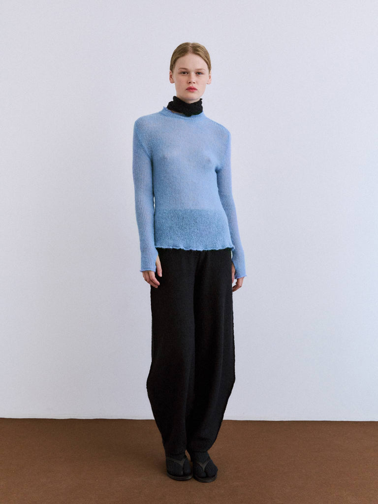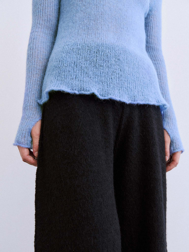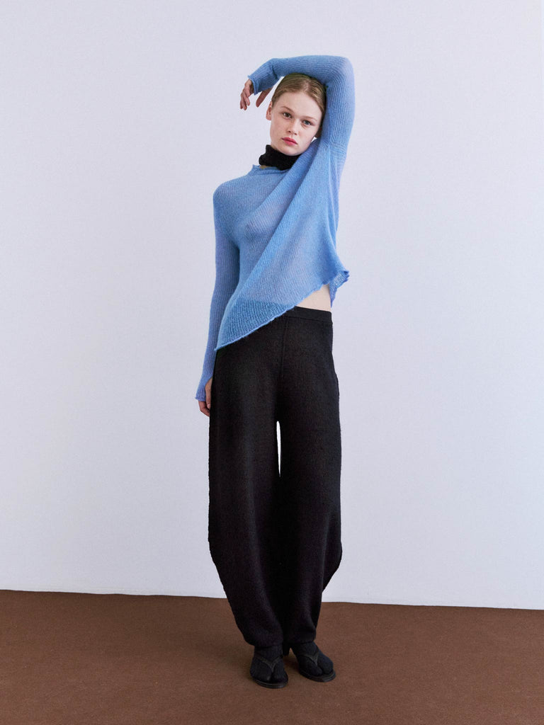 Rounded-leg pants crafted from a soft looped pile knit in a fine baby alpaca blend. Designed for a relaxed fit with a ribbed, elasticated waistband for effortless comfort.