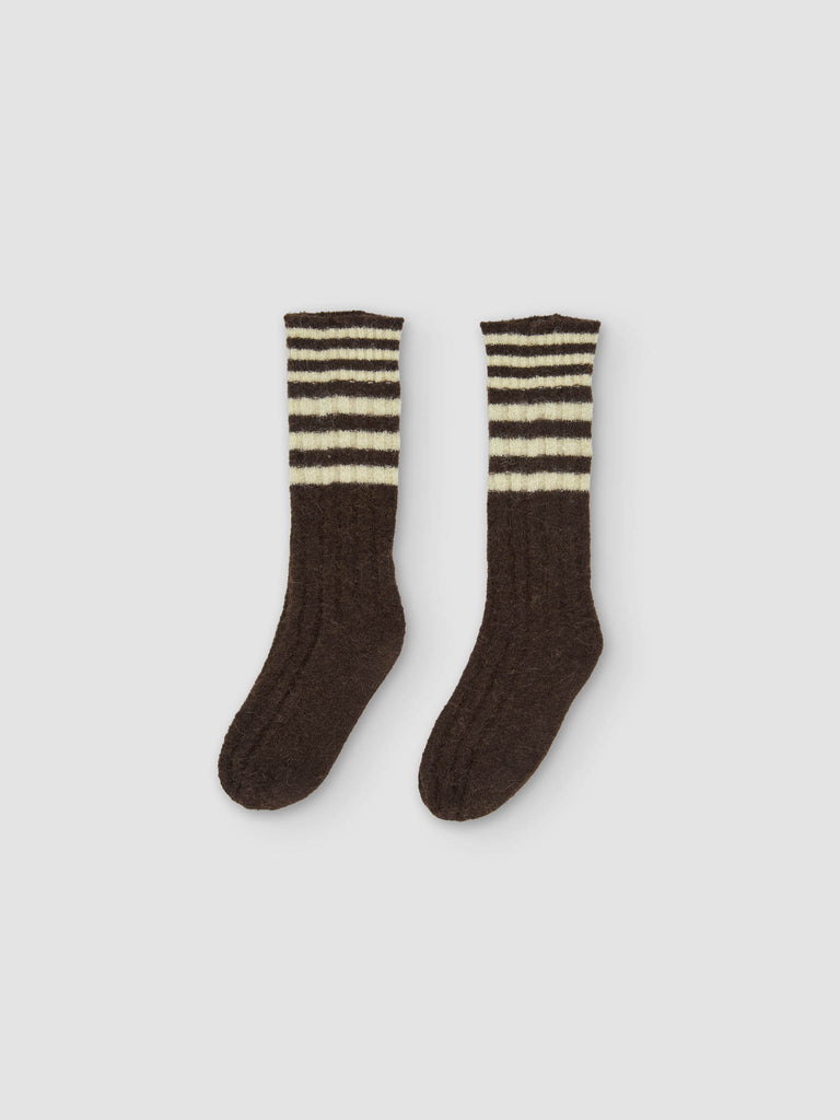Ribbed chunky mid-calf socks knitted from a soft and fuzzy baby alpaca blend for extra warmth.
