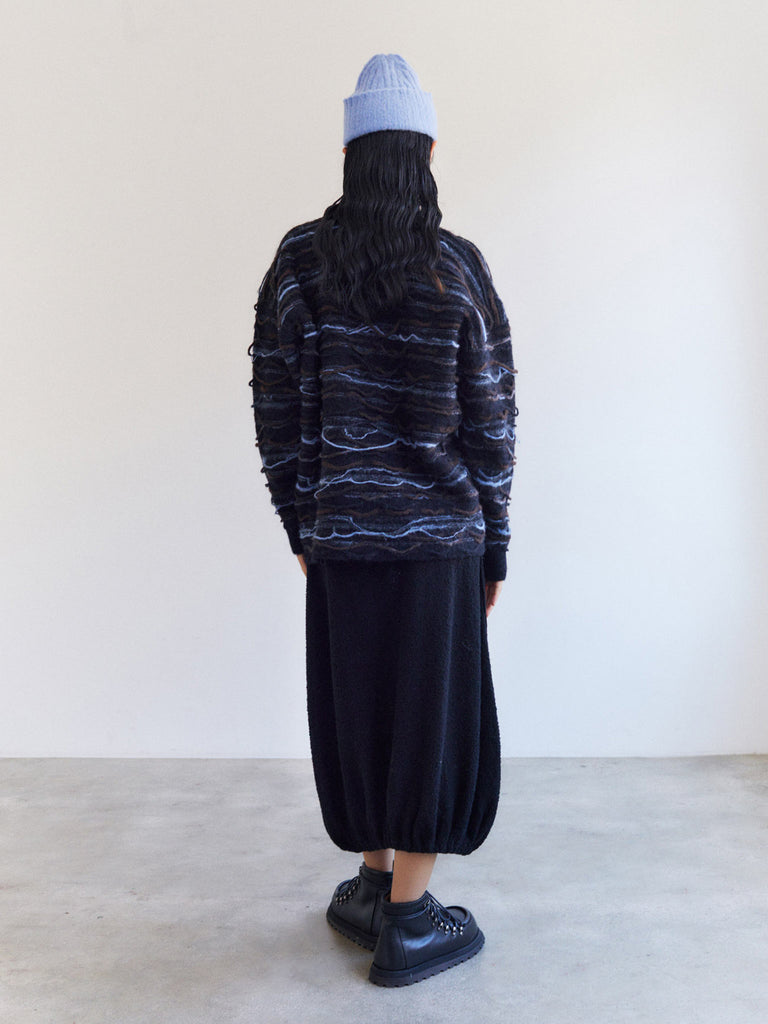 Ribbed beanie with fully fashioned details knitted from a soft and fuzzy baby alpaca yarn.
