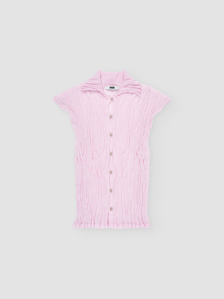 Organic cotton textured top Regular priceLightweight sleeveless top crafted from organic cotton, knitted in a textured stitch for a subtle, irregular pleated effect throughout. Features a straight fit with exposed seams, a pointed collar, and a button-down front with closely spaced buttons that subtly reveal what’s underneath.
