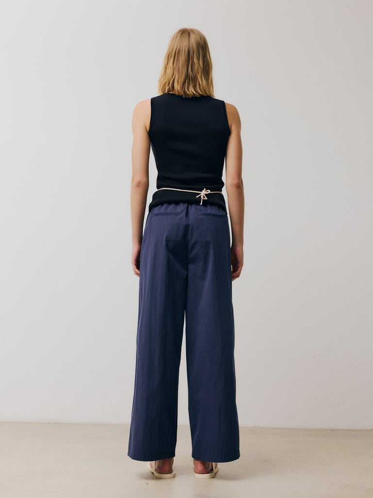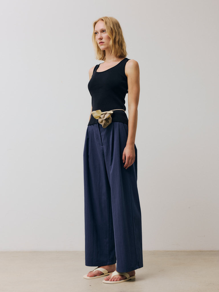 Pleated pants Regular priceWide-leg straight pants featuring a deep double pleat at the waist. Designed with two side pockets, two back welt pockets, belt loops, a front zip closure, and a partially elasticized waistband.