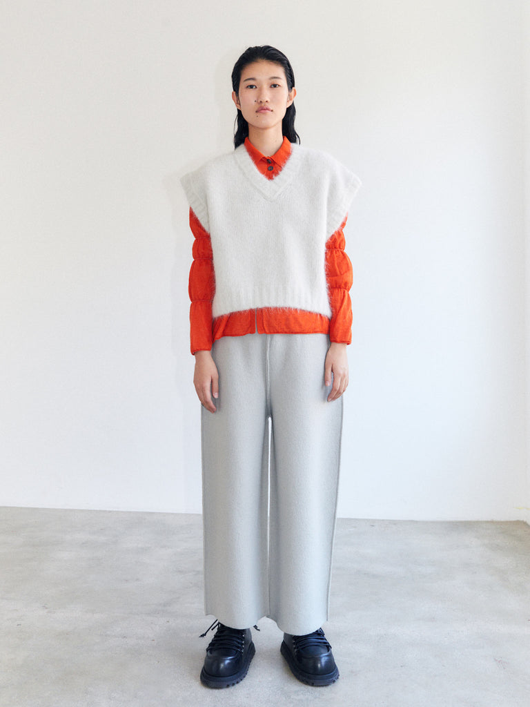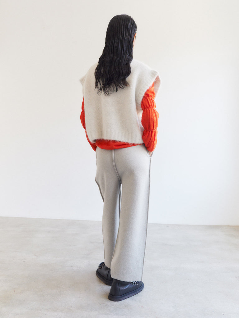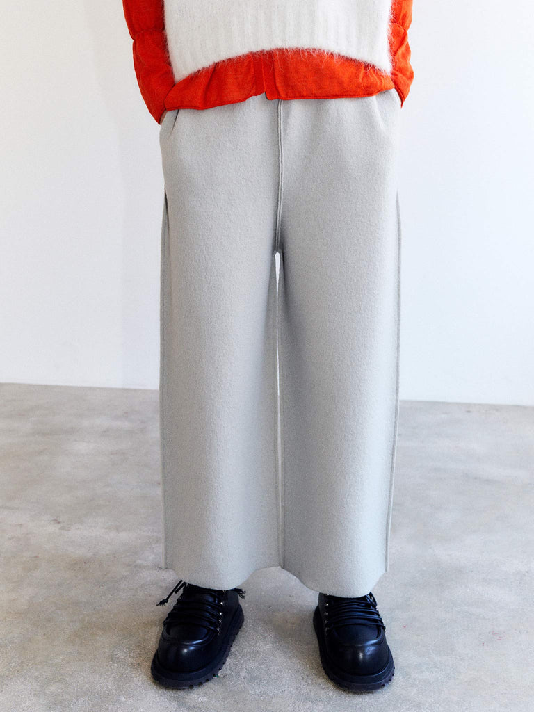 Wool felted pants Regular priceStraight-leg pants crafted from crafted from boiled merino wool. Relaxed fit featuring exposed seams, side pockets and a ribbed elasticated waistband.