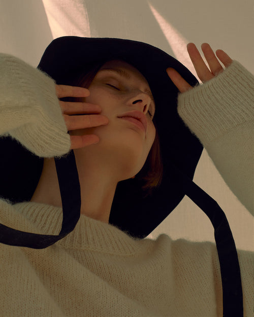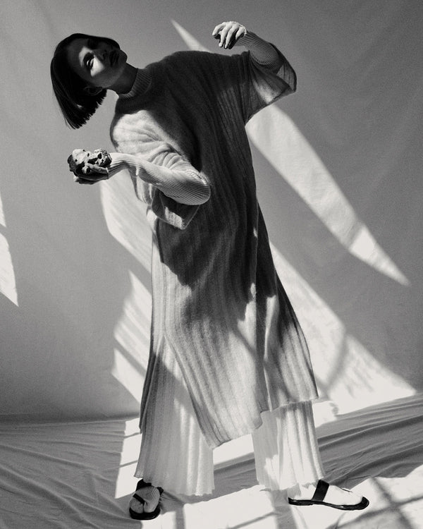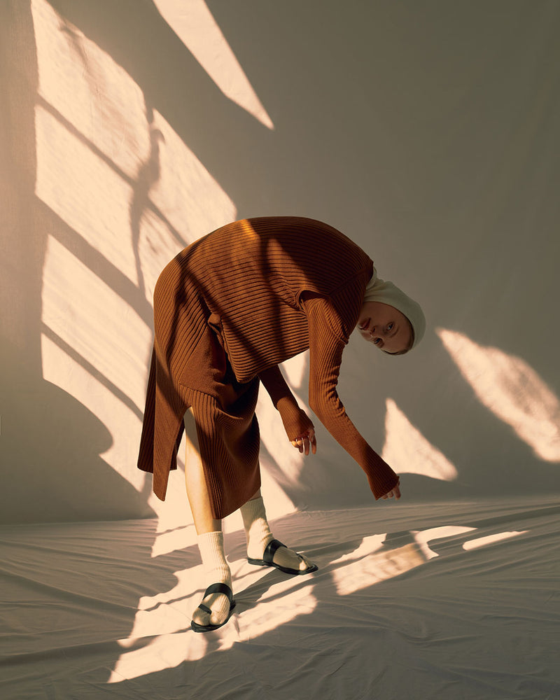 RUS first edition The Ritual is born from that sensorial world, from tactile and visual experiences. It is inspired by real women that are muses themselves and have turned into a personal ritual the act of getting dressed, elevating it to a mystical category. An intimate moment to get ready to face the outside world selecting shapes and layering pieces in infinite ways depending on their mood and necessities.