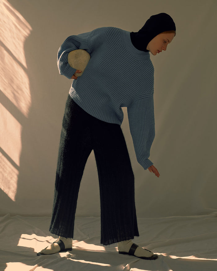 Clean lines and generous shapes softened by the use of mohair and alpaca blends and bulky winter yarns.