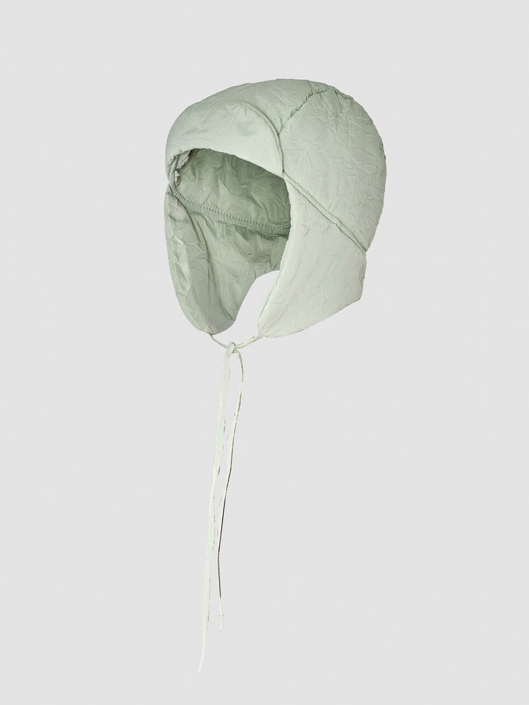Padded rain hat Regular pricePadded ear-flap hat. Featuring long straps to be tied under the chin or on top of the head with the ear muffs folded.Crafted from creased waterproof recycled polyester. Made in collaboration with Maar Hats.