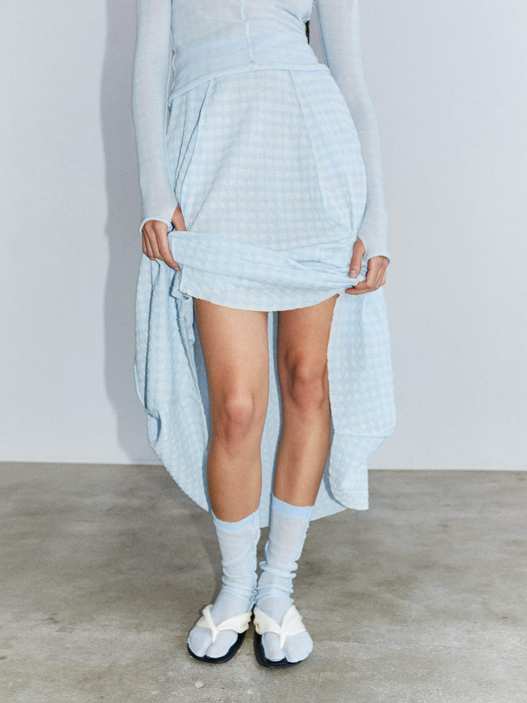 Gingham tabi socks Regular priceHalf calf tabi socks crafted from an ultrafine makó cotton with a subtle two-tone gingham pattern. Featuring a ribbed elasticated trim.
