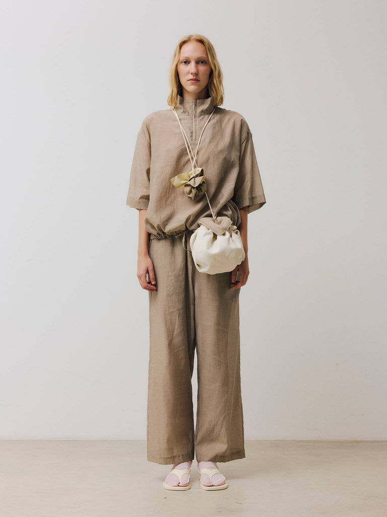Drawstring minipouch Regular priceReversible mini pouch crafted in cotton-silk gingham and lined with textured linen. Features an adaptable strap for wearing around the neck or tying at the waist, finished with a drawstring closure.